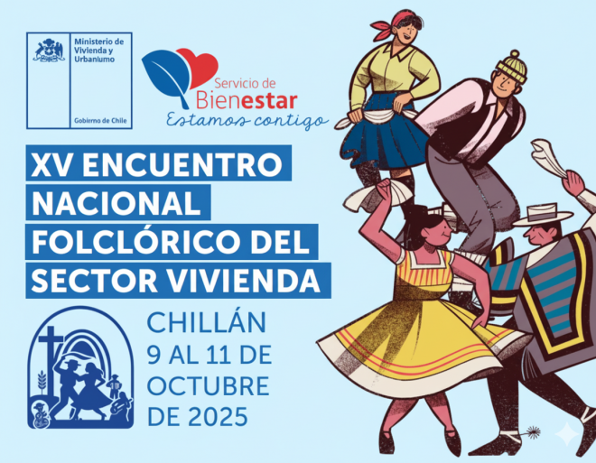 La ciudad de Chillán será el escenario del XV Encuentro Folclórico del Sector Vivienda, que se desarrollará entre el 9 y 11 de octubre con la participación de cerca de 130 funcionarias y funcionarios de todo el país. Este evento, organizado por el Consejo Admnistrativo del Servicio de Bienestar junto con el funcionariado de la SEREMI y el SERVIU de la Región de Ñuble, representa un hito especial al ser la primera vez que se realiza en esta región, en el marco de la celebración de los 60 años del Ministerio de Vivienda y Urbanismo.